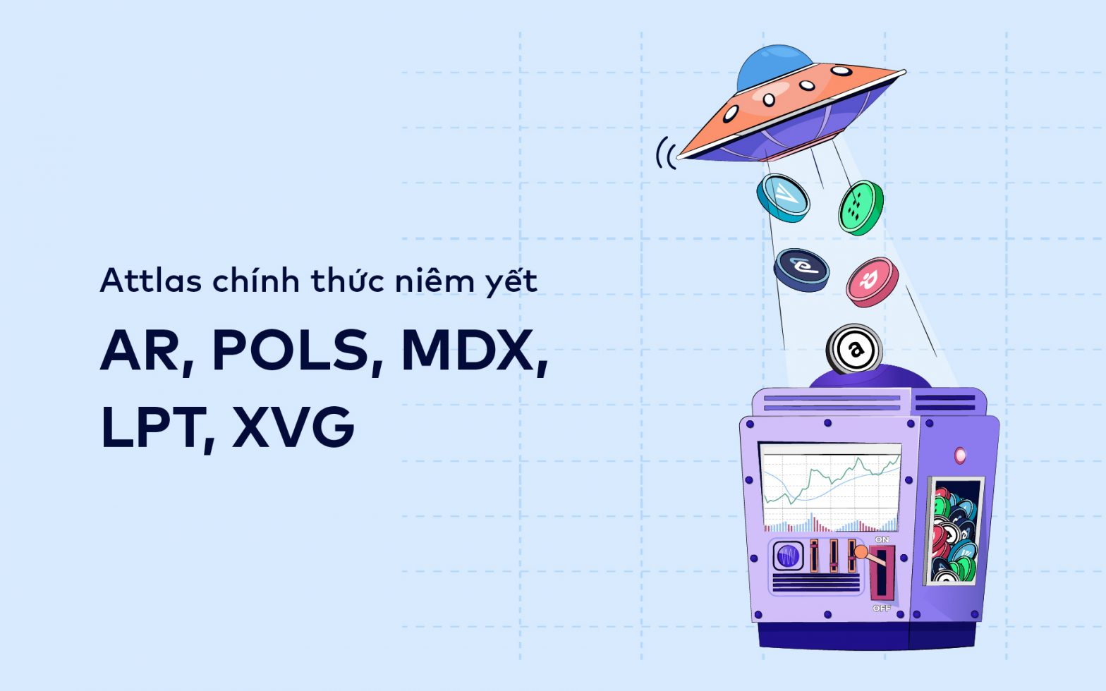 Kể từ ngày 22/07/2021, Attlas Exchange chính thức niêm yết AR, POLS, MDX, LPT, XVG. Nhà đầu tư sẽ có thể dễ dàng sở hữu và giao dịch các token trên Attlas Exchange qua hai cặp giao dịch với VNDC và USDT.