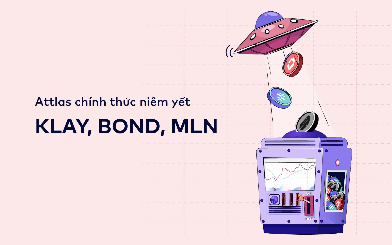 Kể từ ngày 26/07/2021, Attlas Exchange chính thức niêm yết KLAY, BOND, MLN. Nhà đầu tư sẽ có thể sở hữu và giao dịch các token trên Attlas Exchange qua hai cặp giao dịch với VNDC và USDT.