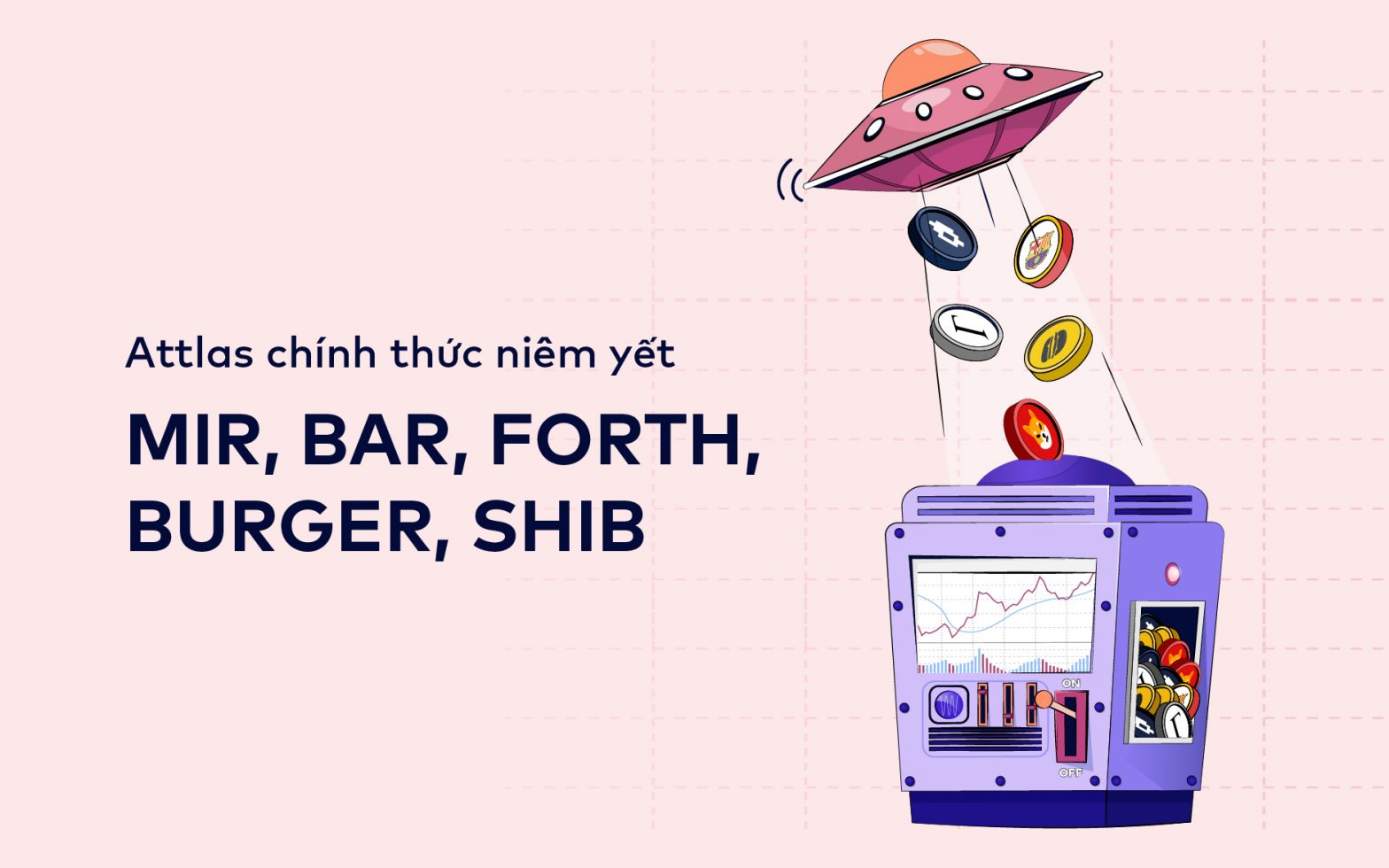 Kể từ ngày 20/07/2021, Attlas Exchange chính thức niêm yết MIR, BAR, FORTH, BURGER, SHIB. Nhà đầu tư sẽ có thể sở hữu và giao dịch các token trên Attlas Exchange qua hai cặp giao dịch với VNDC và USDT.