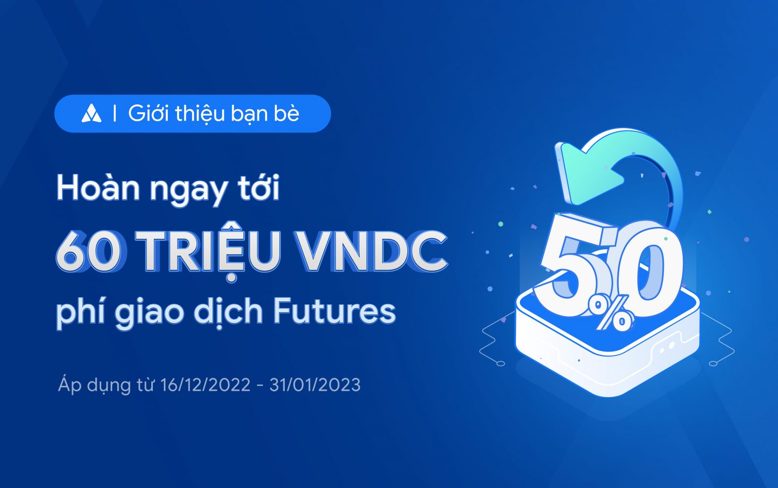 Hoàn tiền lên tới 60 triệu VNDC phí giao dịch Futures khi giới thiệu bạn bè