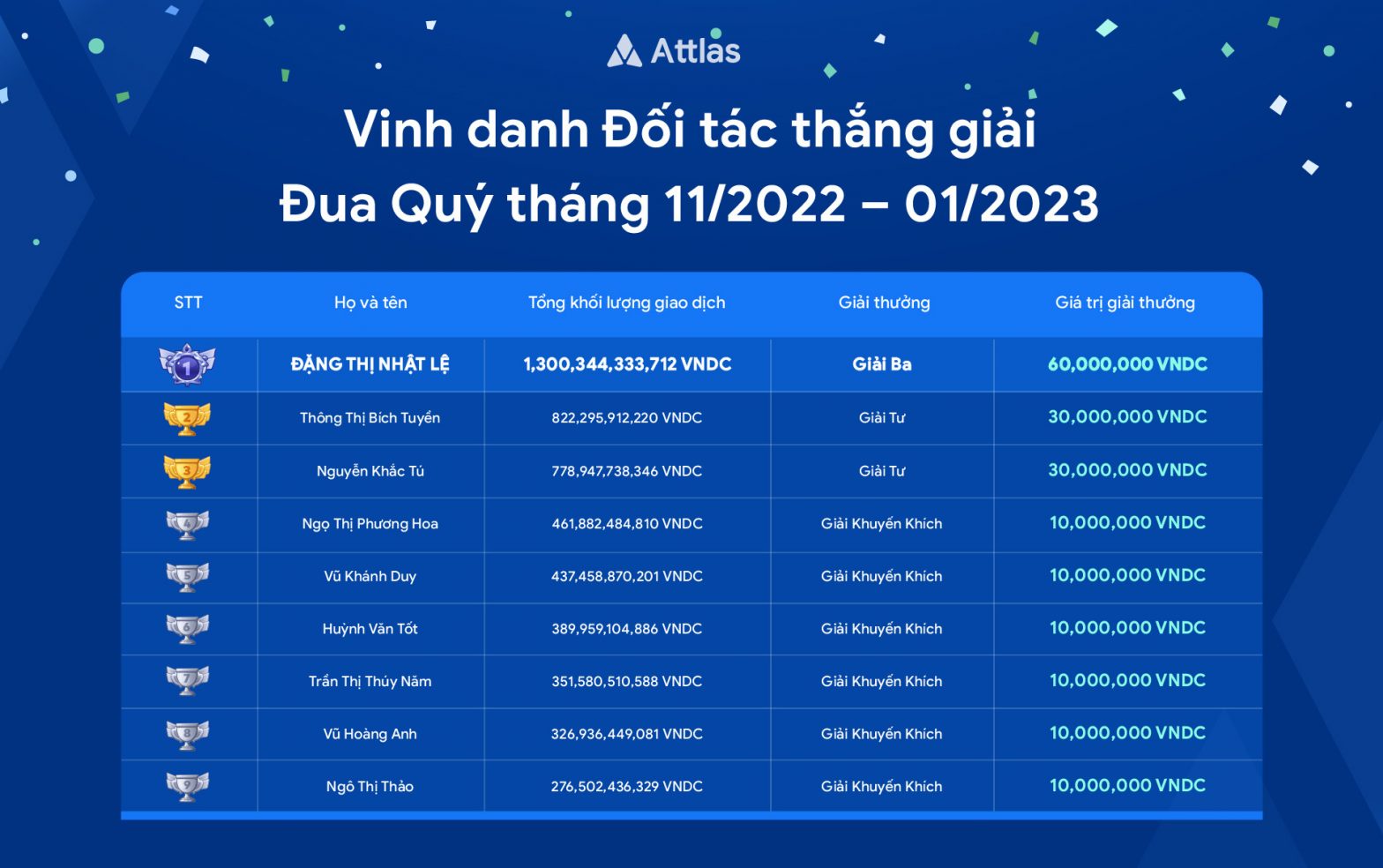 Vinh danh đối tác có khối lượng giao dịch vượt trội tháng 1 và Quý 4/2022