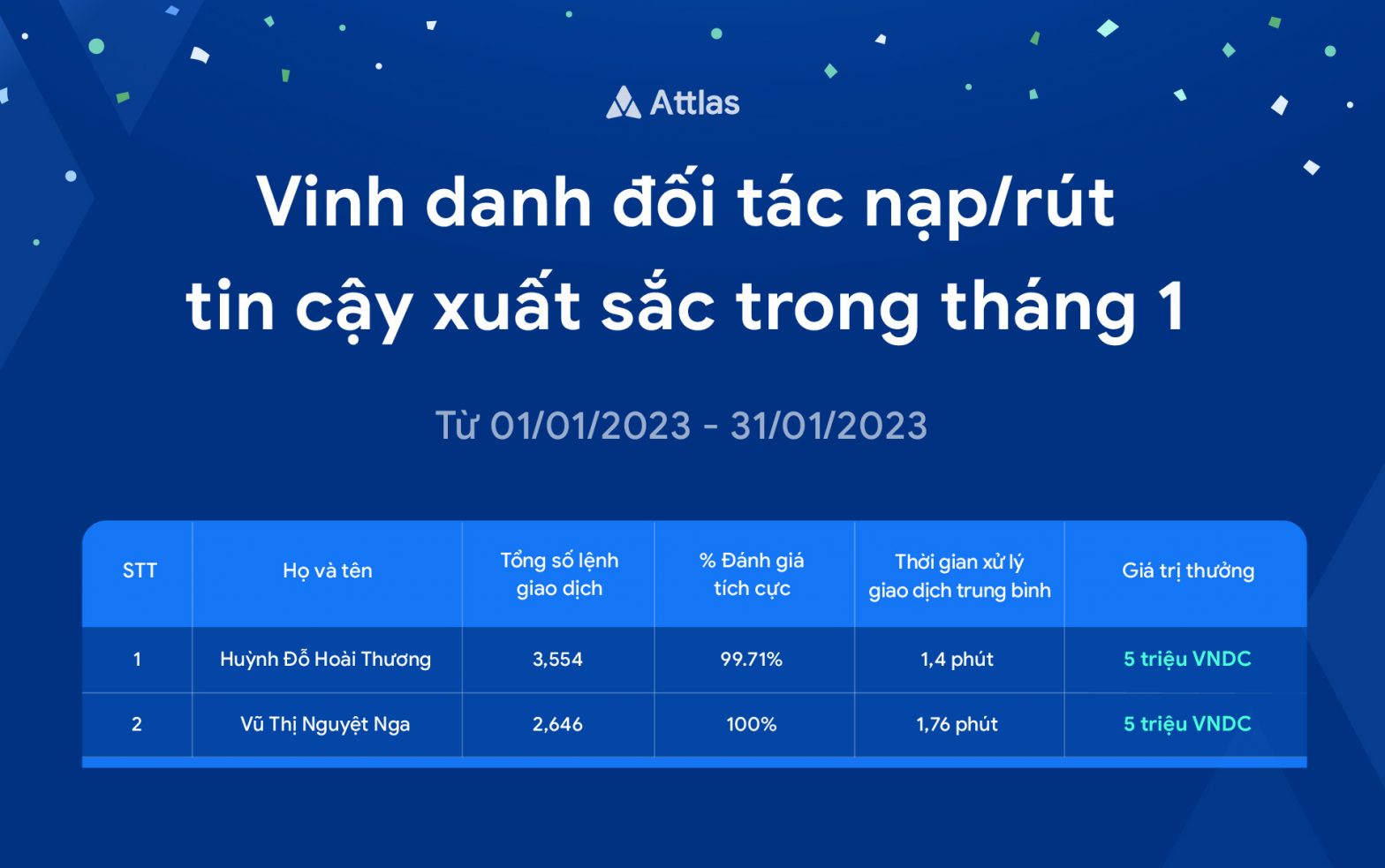 Vinh danh đối tác nạp/rút tin cậy xuất sắc tháng 1