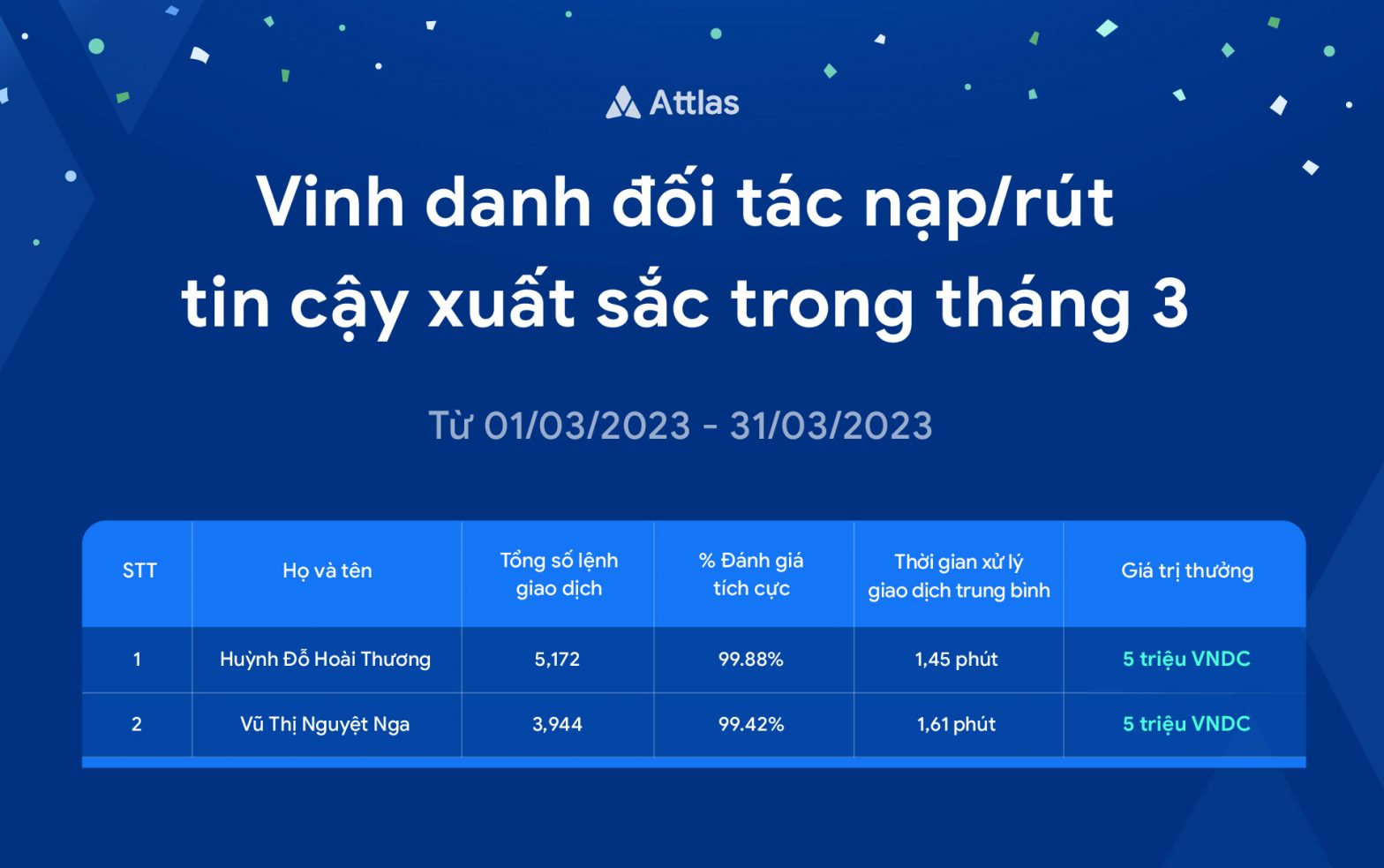 Vinh danh đối tác nạp/rút tin cậy xuất sắc tháng 3
