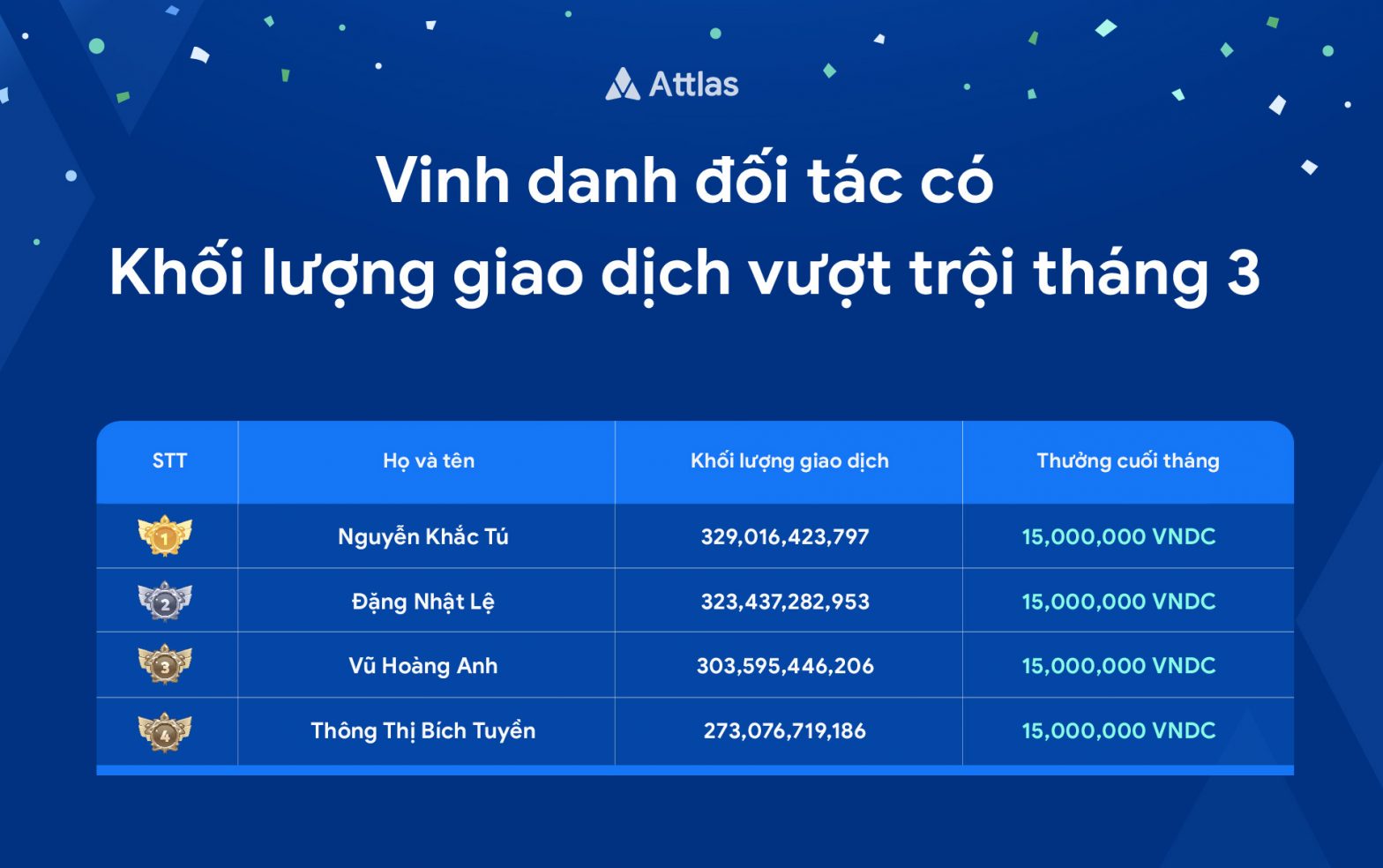 Vinh danh đối tác có khối lượng giao dịch vượt trội tháng 3
