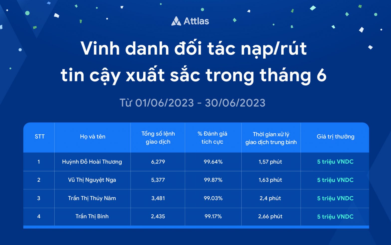Vinh danh đối tác nạp/rút tin cậy xuất sắc tháng 6