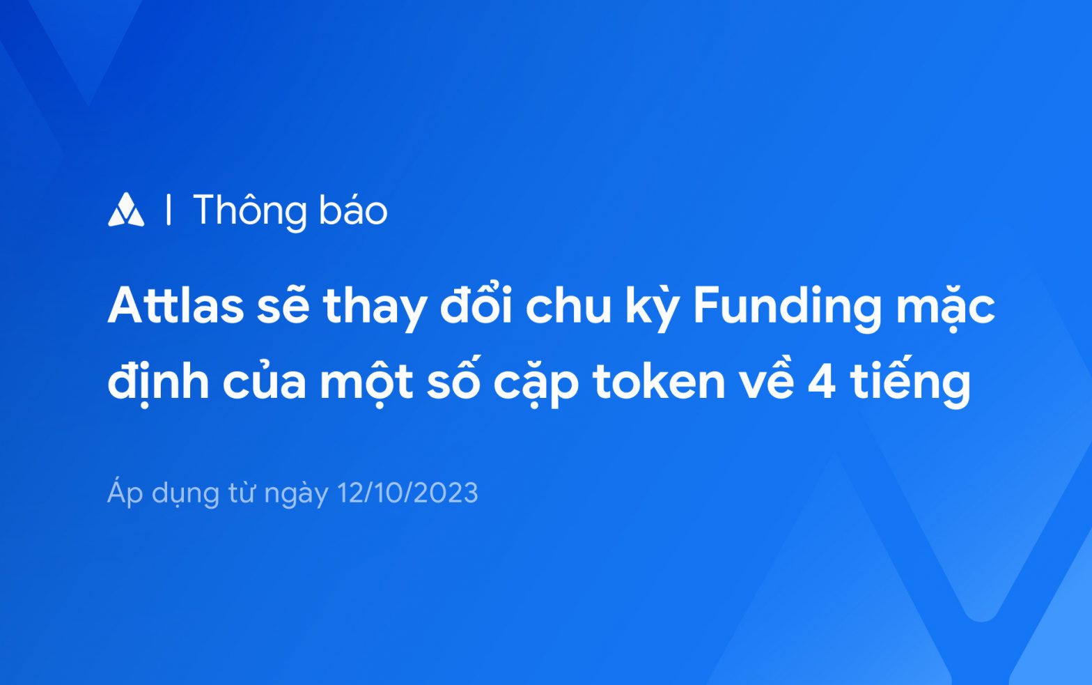 Attlas thông báo sẽ thay đổi chu kỳ funding mặc định của một số cặp Token về 4 tiếng, áp dụng từ ngày 12/10/2023.