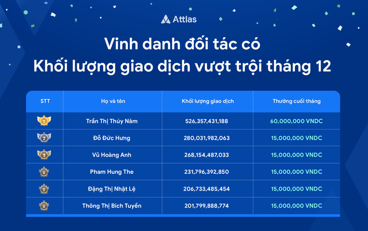 Vinh danh đối tác có khối lượng giao dịch vượt trội tháng 12