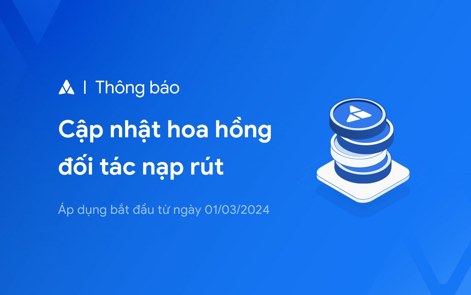 Thông báo: Cập nhật hoa hồng đối tác nạp rút