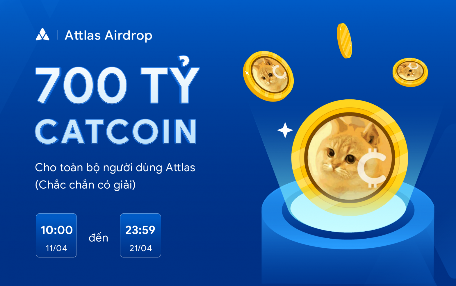 CATCOIN là một trong số memecoin đang được quan tâm nhất bởi cộng đồng quốc tế và Việt Nam hiện nay. Attlas sẽ Airdrop (tặng miễn phí) lên tới 700 tỷ CATCOIN khi người dùng thực hiện nhiệm vụ của chương trình.
