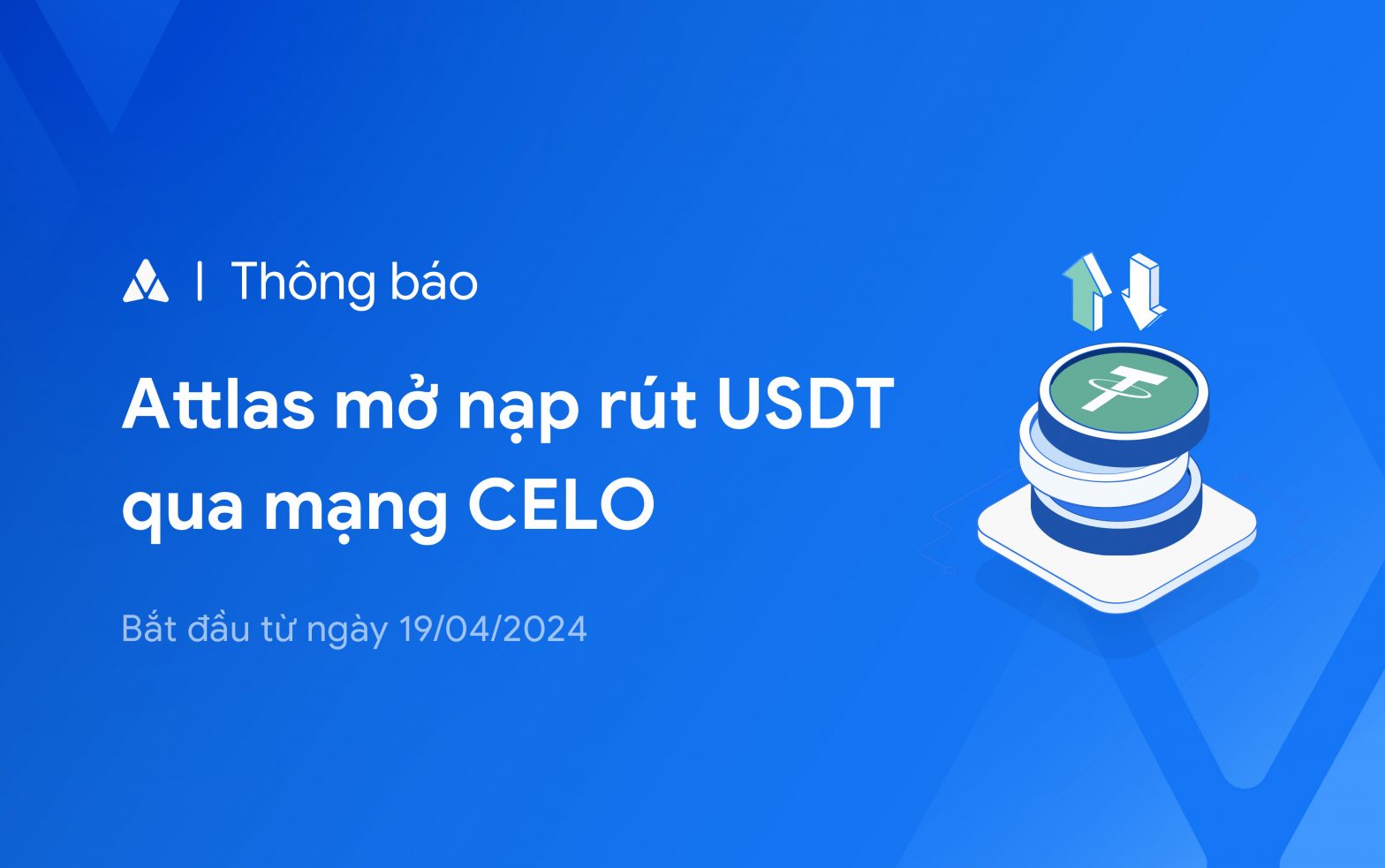 Nhằm tạo điều kiện cho người dùng chuyển đổi USDT dễ dàng, Attlas mở nạp rút USDT trên mạng Celo từ 09:00 ngày 19/04/2024,