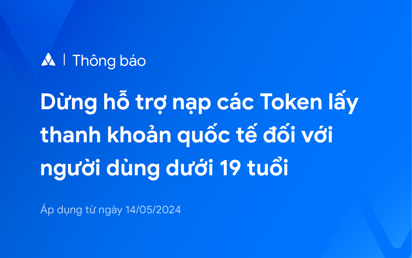 Dừng hỗ trợ nạp các Token lấy thanh khoản quốc tế đối với người dùng dưới 19 tuổi