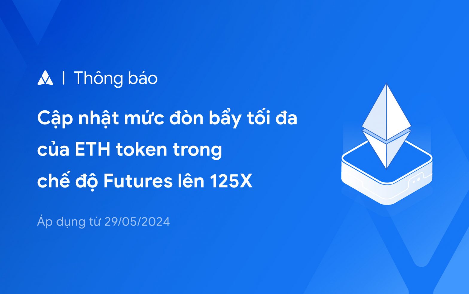 Cập nhật mức đòn bẩy tối đa của token ETH trong chế độ Futures lên 125X từ 10:00 ngày 29/05/2024.