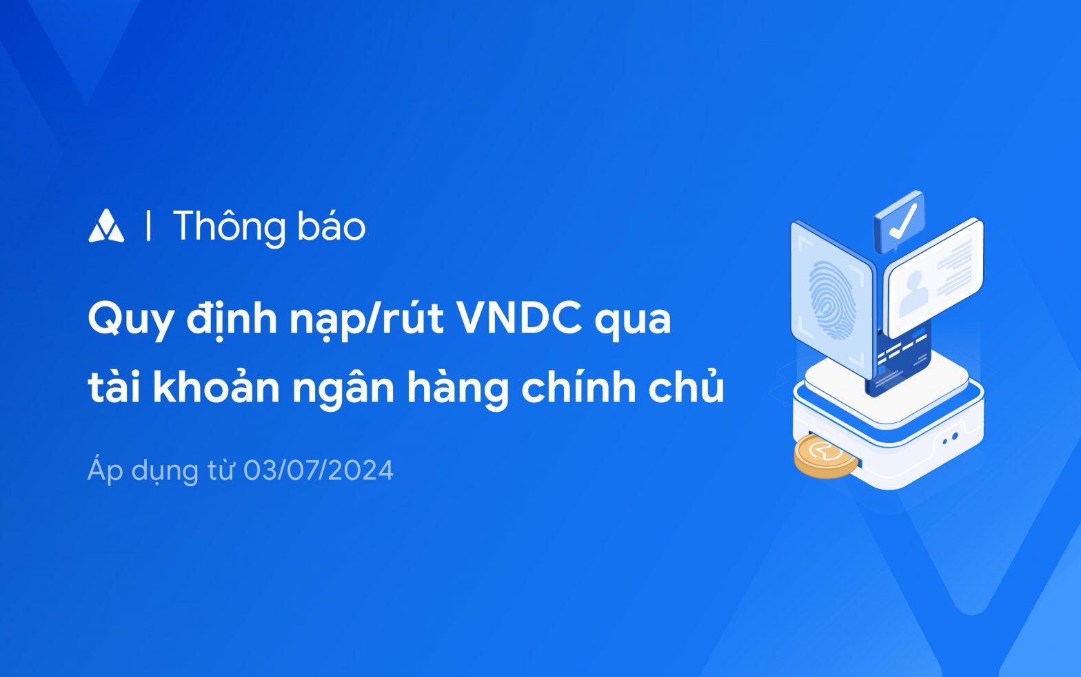 Thông báo quy định nạp/rút VNDC qua tài khoản ngân hàng chính chủ