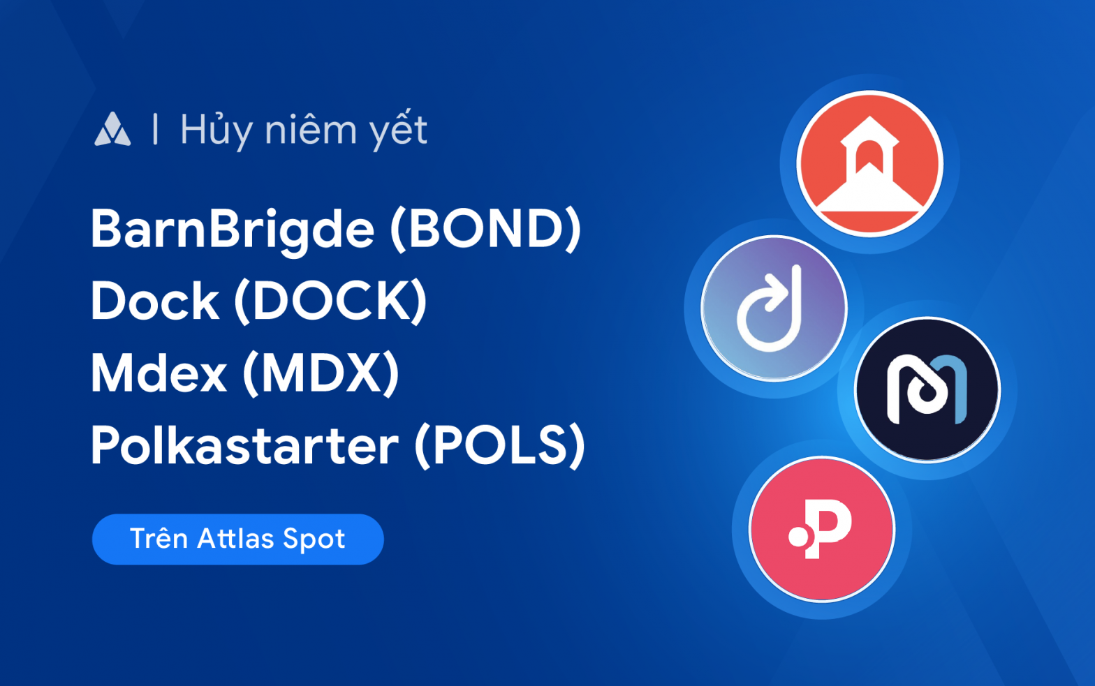Hủy niêm yết BOND, DOCK, MDX, POLS Token trên Attlas Spot