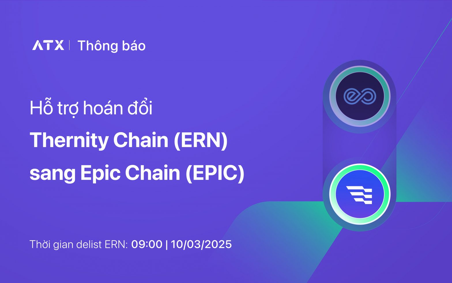 ATX hỗ trợ hoán đổi Thernity Chain (ERN) sang Epic Chain (EPIC) từ 09:00 ngày 10/03/2025.