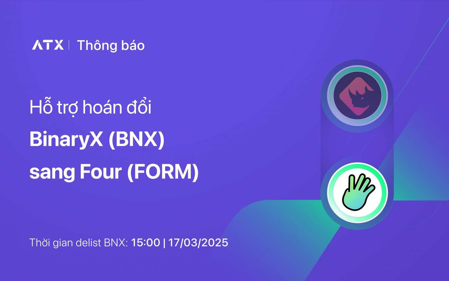 ATX hỗ trợ hoán đổi BinaryX (BNX) sang Four (FORM) từ 15:00 ngày 17/03/2025.