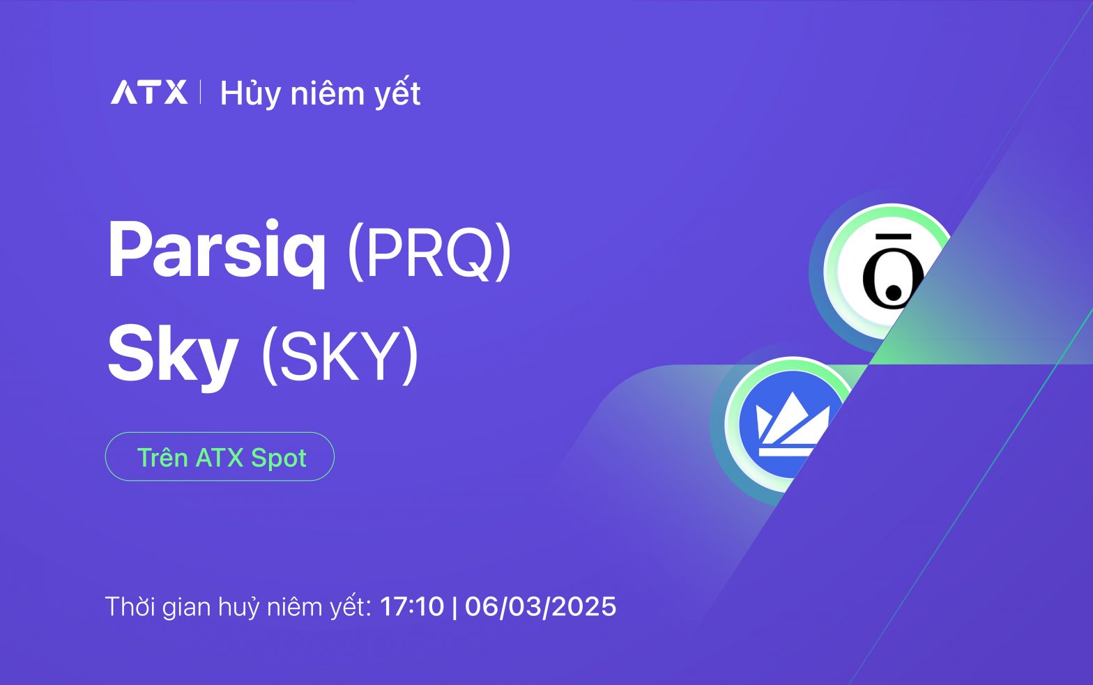 Hủy niêm yết PRQ & SCY Token trên ATX Spot từ 17:10 ngày 06/03/2025.