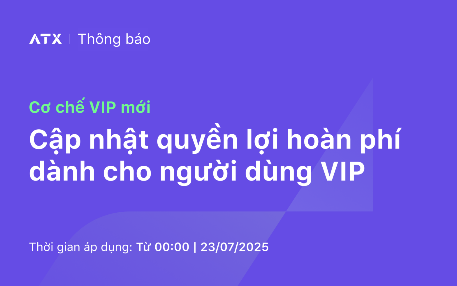 Thông báo: Cập nhật quyền lợi hoàn phí dành cho người dùng VIP ATX từ 00:00 ngày 23/07/2025.