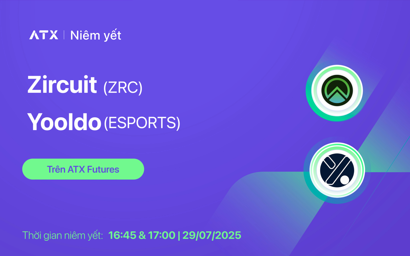 ATX chính thức niêm yết ZRC & ESPORTS token trên ATX Futures từ 16:45 & 17:00 ngày 29/07/2025.