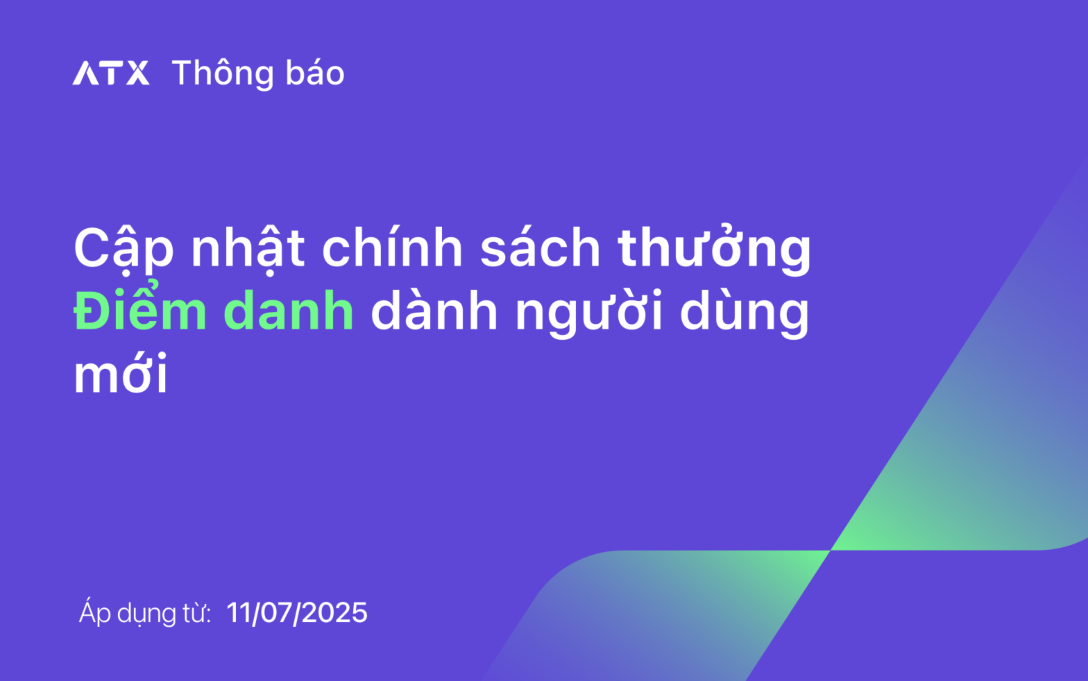 ATX thông báo cập nhật chính sách thưởng Điểm danh dành cho người dùng mới, áp dụng từ 11/07/2025.