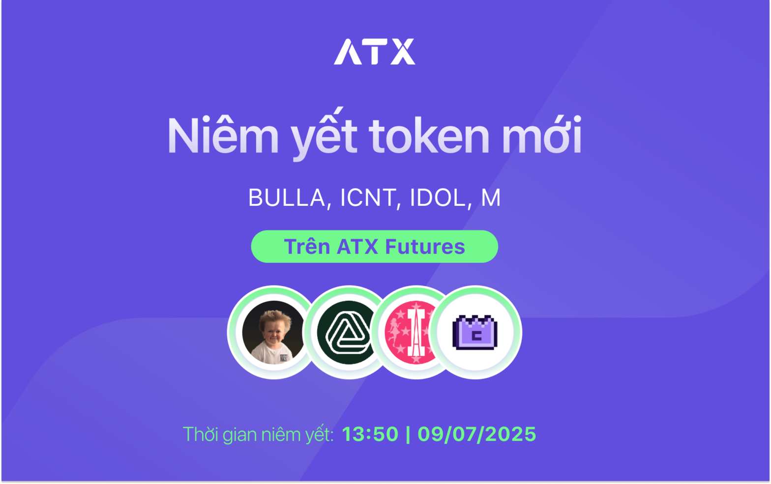 ATX chính thức niêm yết BULLA, ICNT, IDOL, M token trên ATX Futures từ 13:50 ngày 09/07/2025.