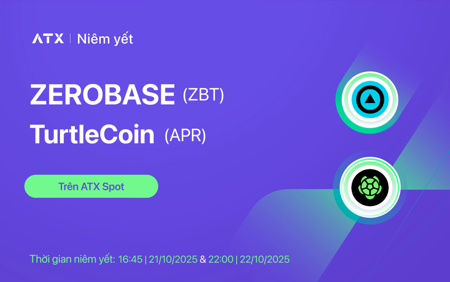 ATX chính thức niêm yết ZBT & TURTLE token trên ATX Spot từ 16:45 ngày 21/10/2025 & 22:00 ngày 22/10/2025.