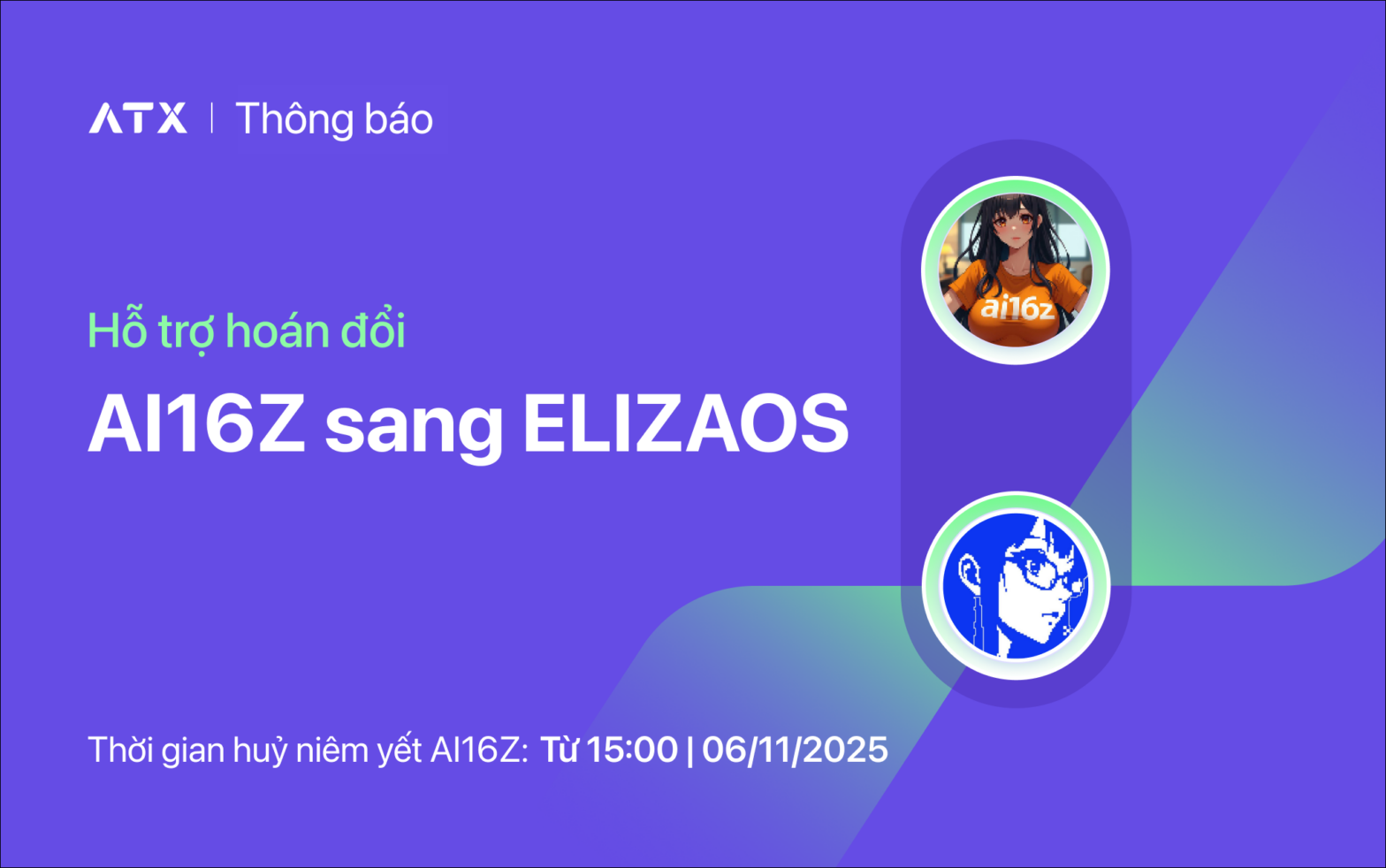 ATX hỗ trợ hoán đổi AI16Z sang ELIZAOS token từ 15:00 ngày 06/11/2025.