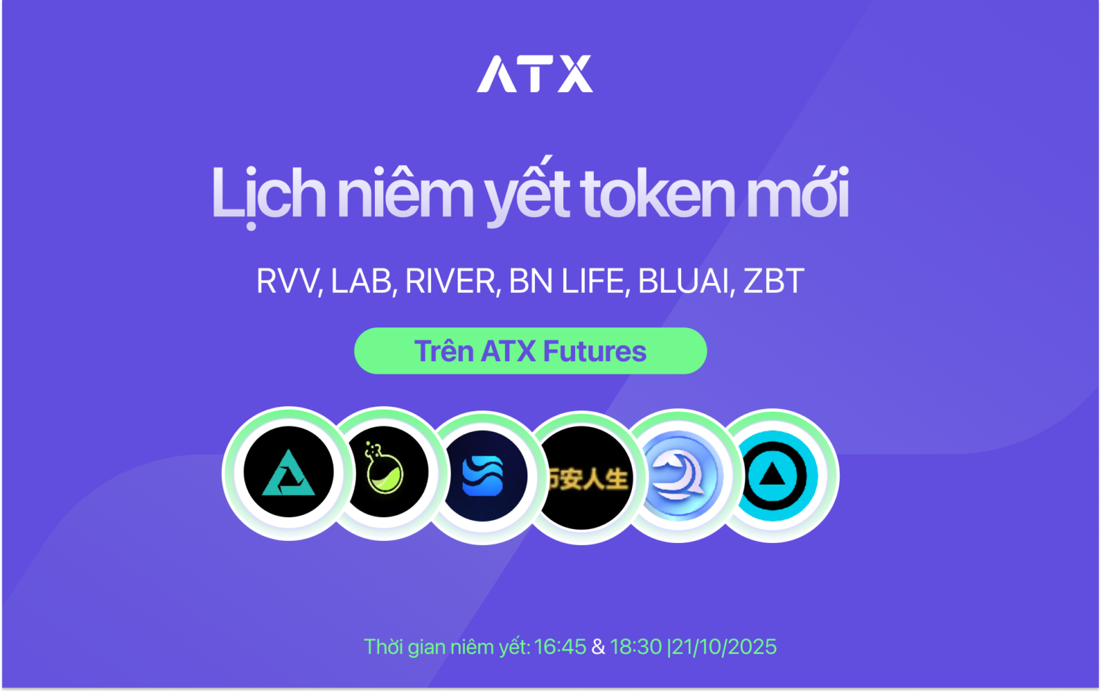 ATX chính thức niêm yết RVV, LAB, RIVER, BN LIFE, BLUAI, ZBT token trên ATX Futures với lịch trình cụ thể như sau: