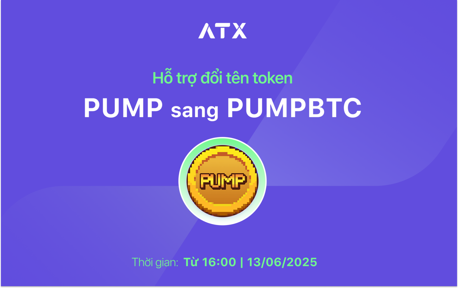 Theo yêu cầu từ phía dự án, ATX thông báo đổi tên token PUMP thành PUMPBTC kể từ 16:00 ngày 13/06/2025, cụ thể: