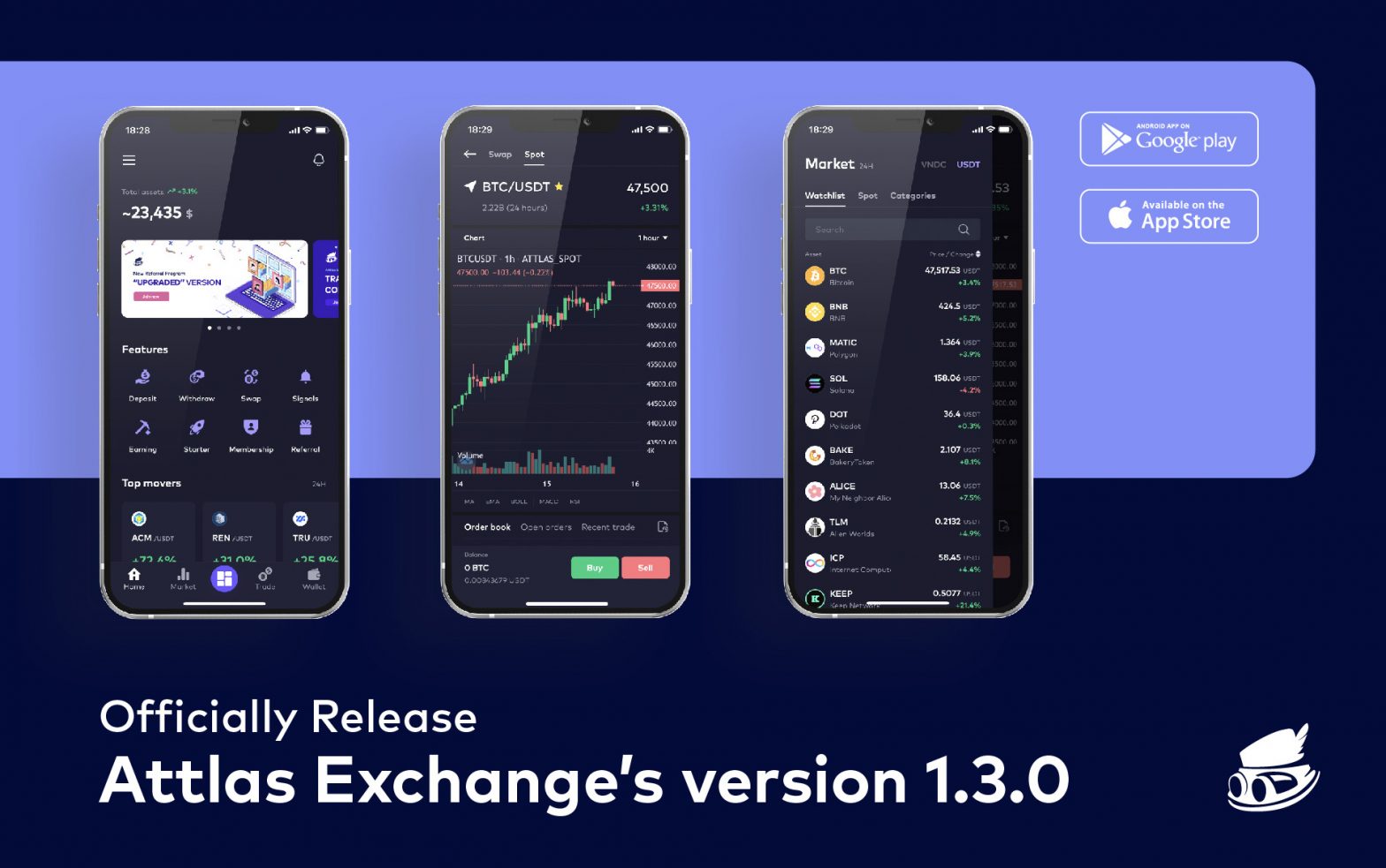 On 2021/09/15, Attlas Exchange releases version 1.3.0 with many new features. Update the application on Appstore or Play Store to experience the latest version.