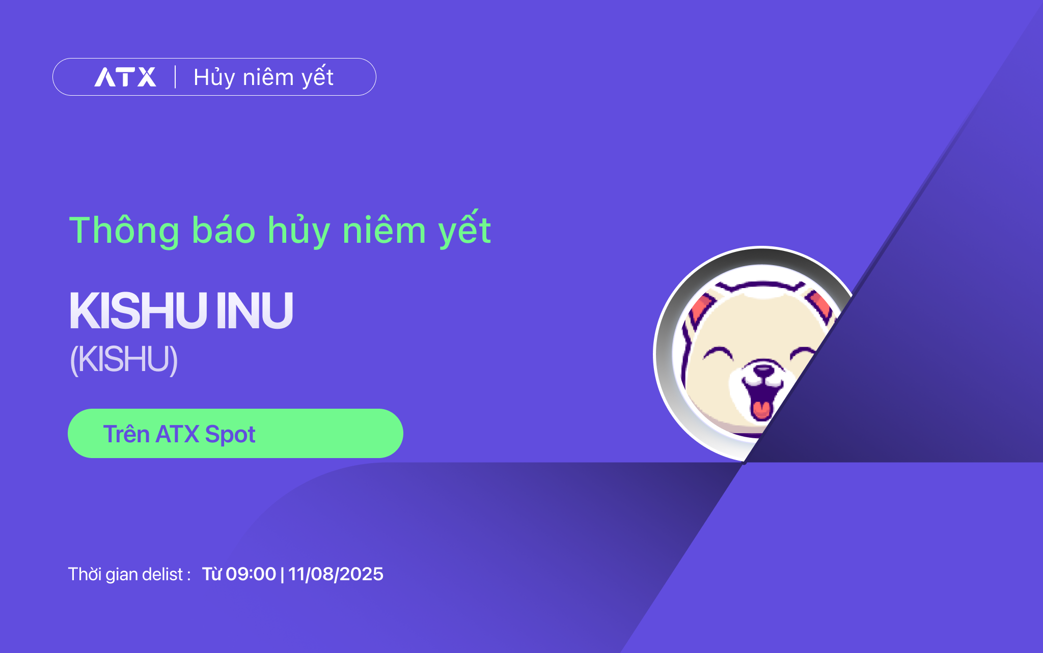 - Các cặp giao dịch: KISHU/USDT, KISHU/VNDC sẽ bị huỷ niêm yết trên ATX Spot. Các lệnh được đặt sẽ tự động huỷ sau khi các cặp giao dịch bị huỷ niêm yết.