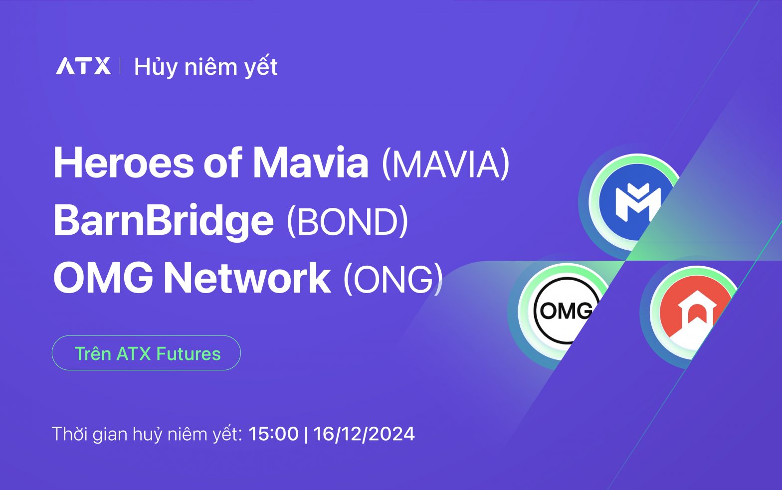 - Các cặp giao dịch: MAVIA/USDT, MAVIA/VNDC, OMG/USDT, OMG/VNDC, BOND/USDT, BOND/VNDC sẽ bị huỷ niêm yết trên ATX Futures.