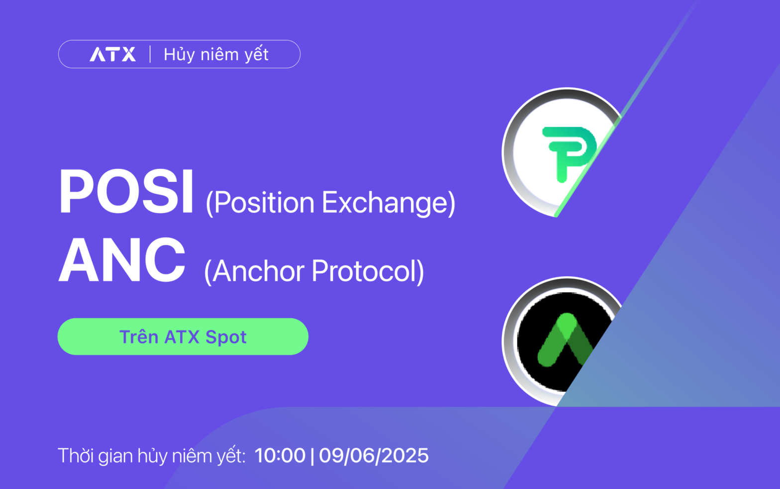 Hiện nay, các sàn giao dịch quốc tế đã có kế hoạch gỡ bỏ giao dịch với các token POSI & ANC. Theo đó, ATX xin thông báo: Hủy niêm yết các cặp token này trên ATX Spot cụ thể: