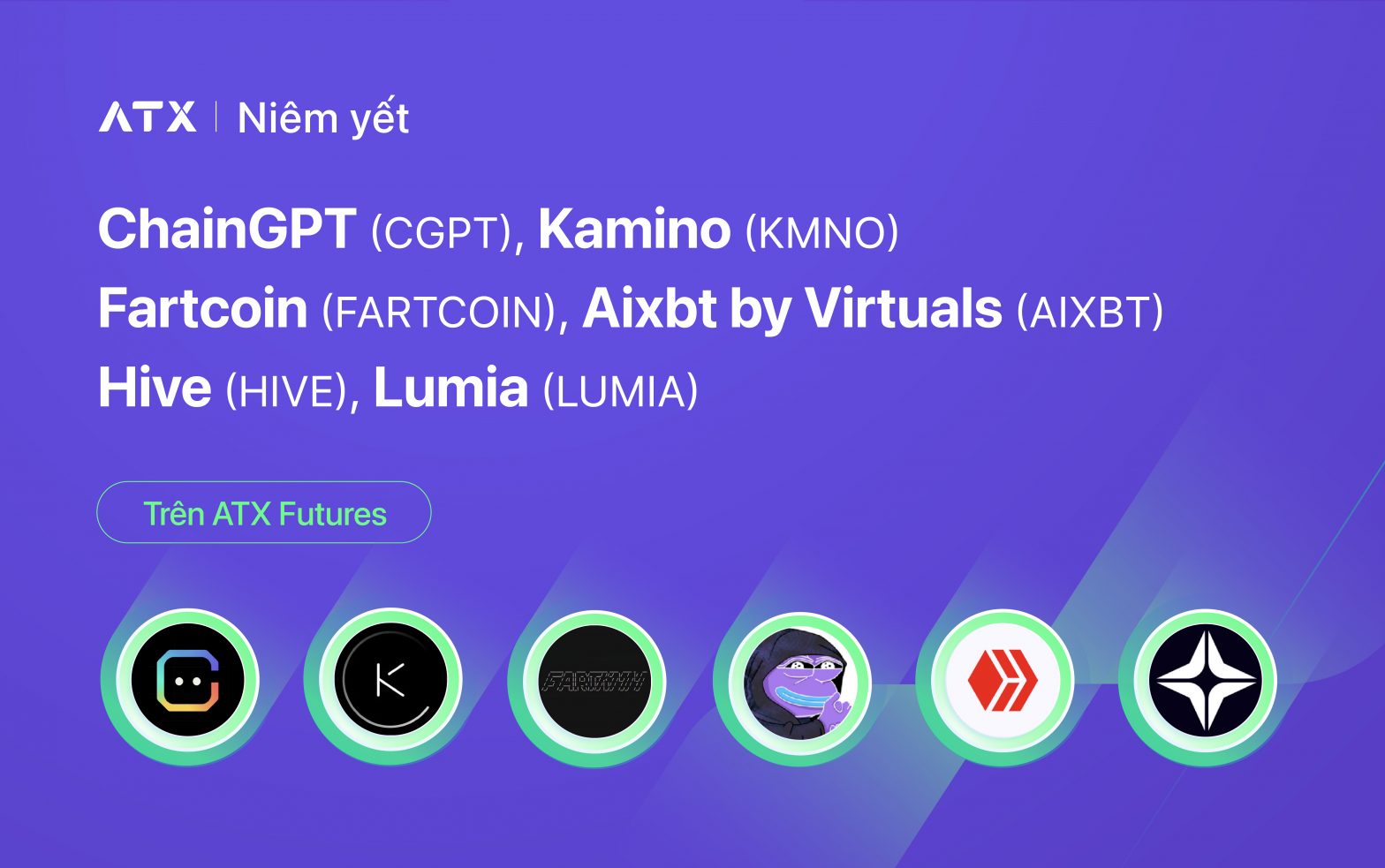 Giao dịch CGPT, KMNO, FARTCOIN, AIXBT, HIVE, LUMIA token trên ATX