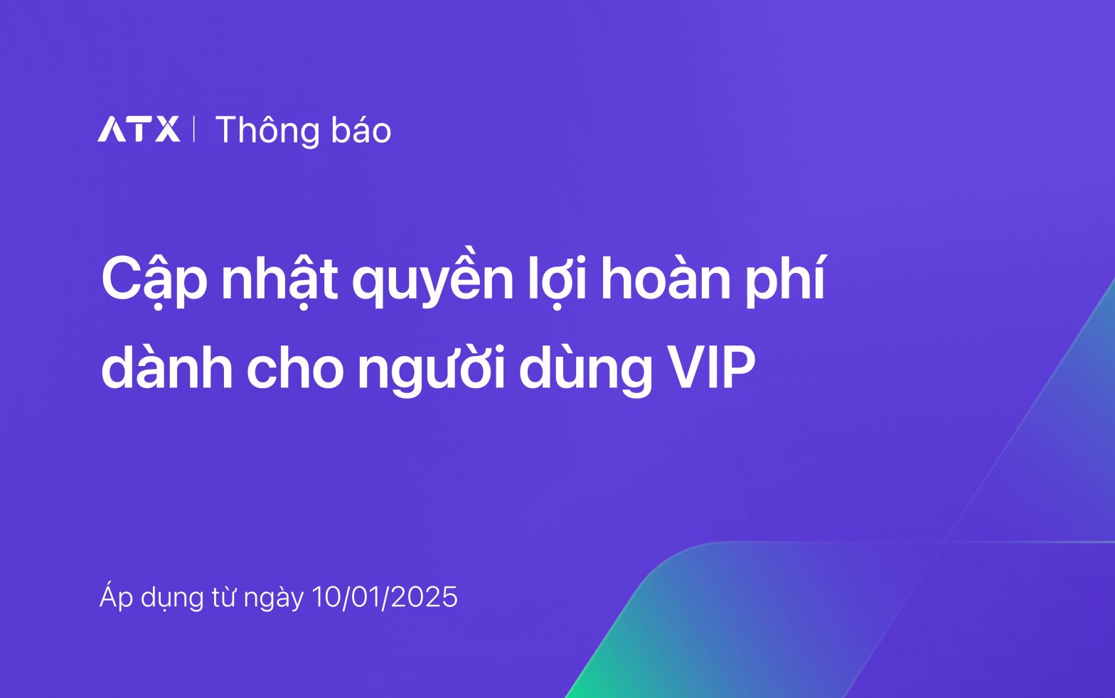 Cập nhật quyền lợi hoàn phí dành cho người dùng VIP ATX từ 00:00 ngày 10/01/2025.